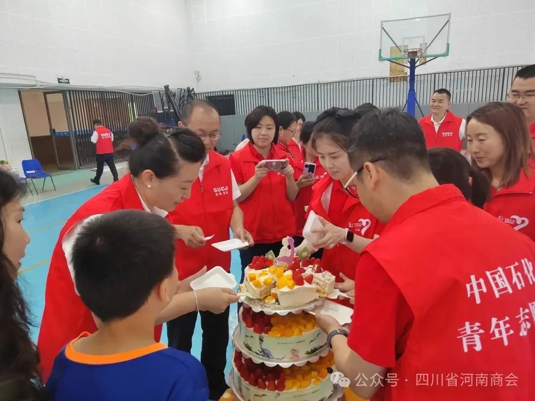 活动尾声,全体师生与志愿者共同切开象征团圆与祝福的节日蛋糕,在《六一快乐》的旋律中分享甜蜜。每位孩子还收到了精心准备的粽子礼盒和礼物,孩子们合影时绽放的一张张笑脸,成为活动最美的注脚。