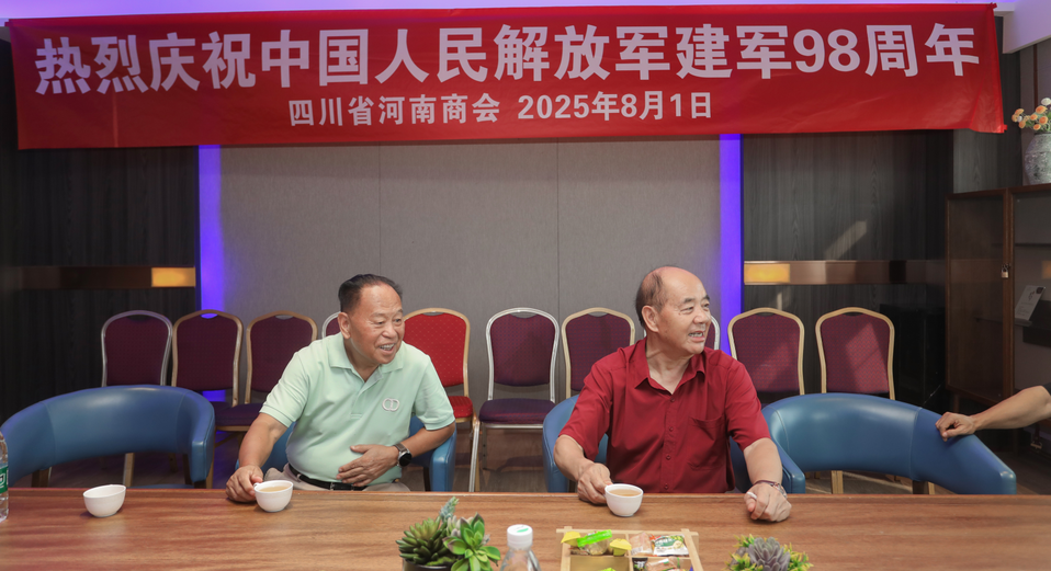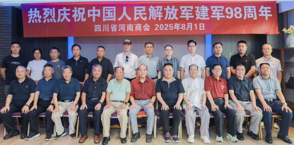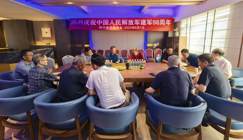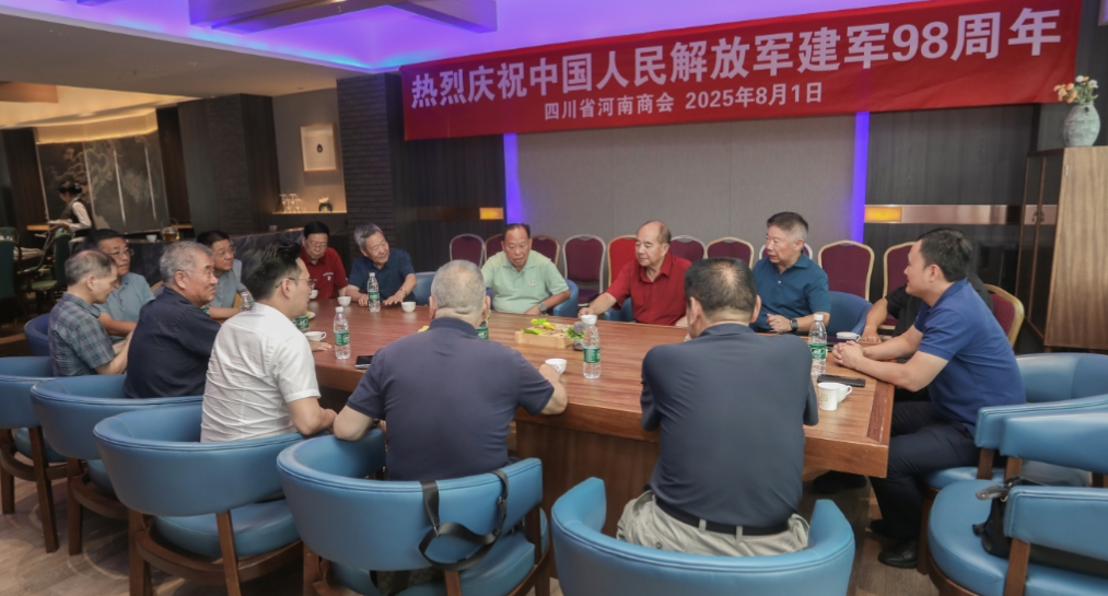 2025 年 8 月 1 日下午,成都郦湾国际酒店 17 楼会议室内气氛庄重而热烈,四川省河南商会在此隆重举行庆祝中国人民解放军建军 98 周年座谈会,河南籍军队退休老领导和商会退役军人共计 30 多人出席,大家齐聚一堂,共同缅怀人民军队的光辉历史,畅叙军旅情怀,共话发展未来。