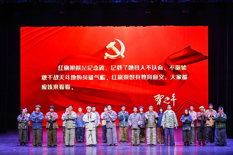 活动重头戏——话剧《红旗渠》震撼登台,以现实主义笔触再现“人工天河”的峥嵘岁月。太行绝壁上的钢钎凿石声、风雪中的号子声、百姓眼中的期盼与坚韧,通过演员的精湛演绎直抵人心,让“自力更生、艰苦创业”的红旗渠精神跨越时空,与巴蜀大地的奋斗基因产生强烈共鸣。舞台之上,全息投影技术还原太行冬雪的苍茫壮阔,与话剧的情感张力交织,打造一场“沉浸式”的精神洗礼。