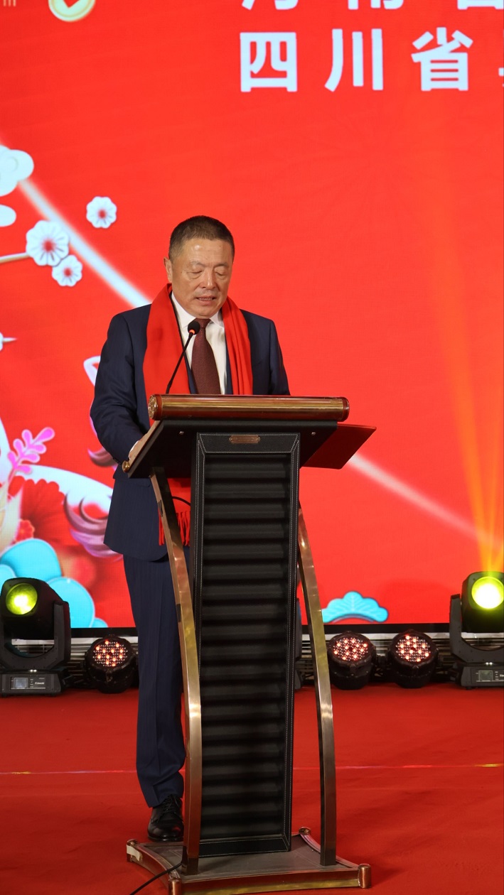 四川省工商联党组成员、副主席杜君良发表讲话。他对四川省河南商会2025年取得的优异成绩表示祝贺,向全体会员企业及在川豫商致以新春祝福。他指出,四川与河南都是人口大省、经济大省,两地世代深入交往交流交融,川商精神和豫商精神在巴蜀大地交相辉映开花结果。尤其是过去一年,面对复杂严峻的外部环境与艰巨复杂的发展任务,四川省河南商会始终把牢政治方向,夯实组织基础,提升服务能力,在凝聚思想共识,搭建合作平台,链接地方资源,服务会员企业,助力企业发展,履行社会责任等方面取得了显著成绩。商会团结带领广大会员企业迎难而上,深耕主业,锐意创新,全年商会企业在川投资达到了25亿元,参加公益事业捐赠达到了300多万元,为四川经济稳中向好作出了积极贡献。河南商会也再次荣获全国河南商会“最具影响力商会”的称号。关于今年的工作,一要强化政治引领,把牢前进方向,希望商会坚持以习近平新时代中国特色社会主义思想为指导,强化思想政治引领,始终保持正确的前进方向。二要加强自身建设,筑牢组织之基。希望商会领导班子带头示范,持续完善法人治理和商会内部管理,推动商会运行更加规范、高效、透明,不断不断增强商会的影响力、向心力和凝聚力。三要聚焦发展要务,汇聚实干之力。希望商会带领广大会员企业紧紧围绕省委省政府的决策,引导企业做精主业、转型升级,增强核心竞争力。帮助企业抢抓机遇,开拓市场,在高质量的发展中展现新作为。四是要弘扬优良传统,彰显担当之责。希望商会传承弘扬新时代企业家精神,引导会员企业厚植家国情怀,勇担社会责任,树立富而有责、富而有义、富而有爱的良好形象。他最后说,旧岁已展千重锦,新年再进百尺竿。希望四川省河南商会团结带领全体会员开拓进取、务实拼搏,为奋力谱写中国式现代化四川篇章作出新的更大贡献!祝愿大家在新的一年里,事业腾飞、家庭美满、万事如意!