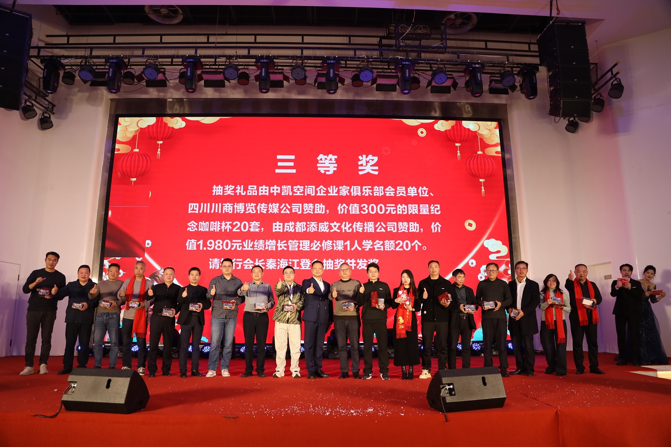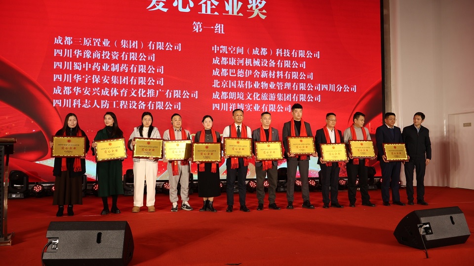 四川省河南商会党委书记王杰宣读了2025年度本级商会和市级河南商会“爱心企业”表彰通报。成都三原置业(集团)有限公司、四川华豫商投资有限公司、四川蜀中药业制药有限公司等24家企业荣获“爱心企业”称号。四川省经济合作局国内处处长喻飞、四川省河南商会会长张观军分别为获奖企业代表授牌。