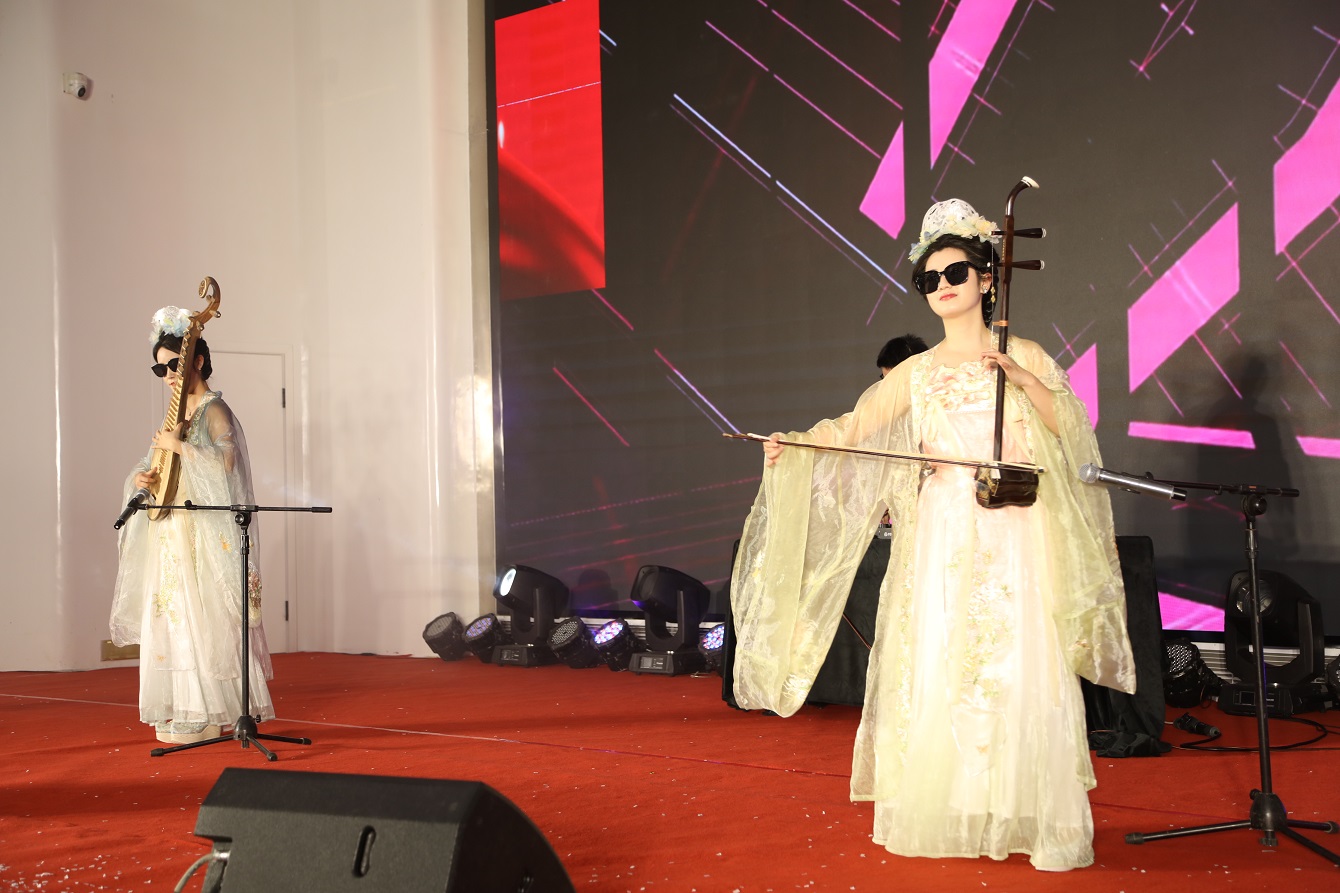 文艺演出环节精彩纷呈,为现场观众带来了一场视听盛宴。开场舞《鼓舞+旗舞》气势恢宏,鼓点铿锵有力,旗帜迎风招展,瞬间点燃了现场气氛;四川音乐学院研究生小夕带来的民歌联唱《好运来》《歌唱祖国》《共圆中国梦》,歌声悠扬动听,传递出对祖国的美好祝福和对未来的憧憬;非遗传承人陈琦表演的非物质文化遗产特色节目《飞叉》,动作娴熟精妙,引来现场观众阵阵掌声;成都花羽舞蹈团先后献上《凤鸣朝阳》《盛世大唐》等舞蹈,展现了中华传统文化的独特魅力;中国知名国潮DJ Frost带来的国潮DJ民乐串烧,将传统民乐与现代电音完美融合,新潮又不失韵味;商会会员马新玲演唱的豫剧选段《朝阳沟》《穆桂英挂帅》,乡音醇厚、韵味十足;最后,歌伴舞《友谊地久天长》温情上演,将整场演出推向高潮。