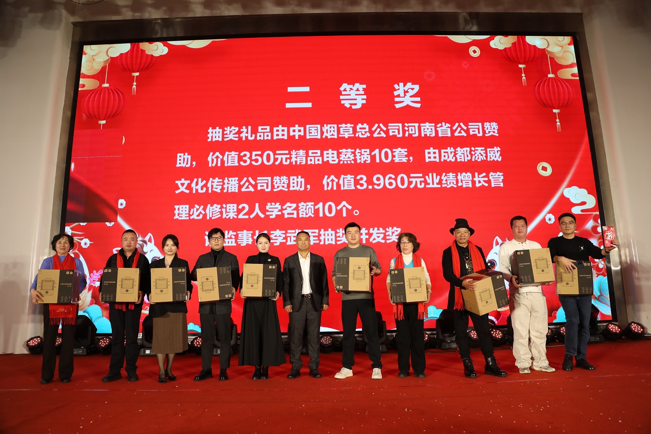接着,会长、党委书记、监事长、副会长登台,依次送上新春祝福,随后由张观军会长带领大家共同祝酒,祝愿祖国繁荣昌盛,祝愿川豫两地发展越来越好,祝愿各位领导、嘉宾及老乡们新春快乐、万事如意!