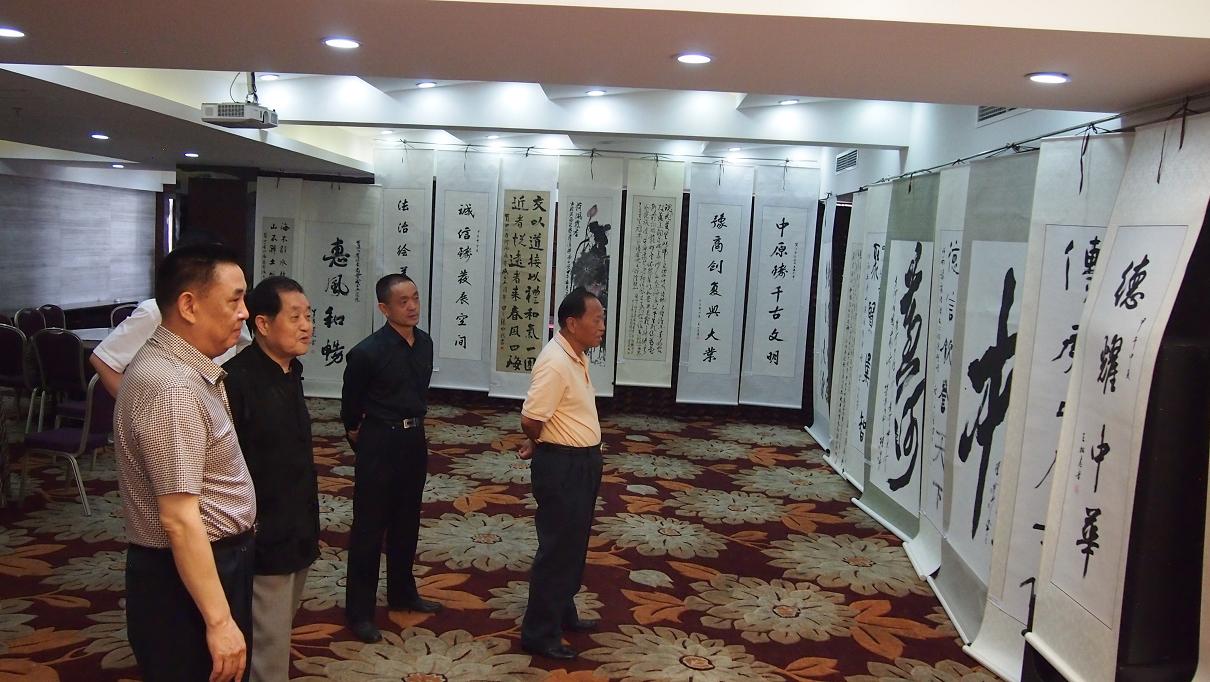 为庆贺四川省河南商会成立五周年,商会特邀请全国著名书法家陈宝华、张宝鞠、石嵩峰、井智杰、菅智民和河南籍老将军陈哲、吴玉邦,商会顾问杜灵恩、张水战、李豫生、王松志、雷新乾、苏超龄等,创作了50多幅书画作品,他们挥毫泼墨,大笔书写“豫商聚蓉城,合作定共赢”、“诚信创业须忘我,蜀豫发展皆故乡”、“传承中原文化,诚信饮誉天下”、“足立天府大地发展经济创事业,心系中原父老谱写文化新篇章”、“黄河赤子,中原精英”、“勇立潮头唱大风,扬帆商海论英雄”、“情系中原,梦圆天府”等精彩词句,充分表达了对商会的厚爱和鼓励,也体现了在川河南老乡的深情厚意,特别是全国著名书法家陈宝华大笔书写的“中”、“黄河”条幅,更充分地展示了豫商精神和中原文化。通过这次书法作品展览,对传承中原文化、弘扬商会文化、促进企业与文化的有机结合等方面起到了积极作用,受到了与会者的好评。