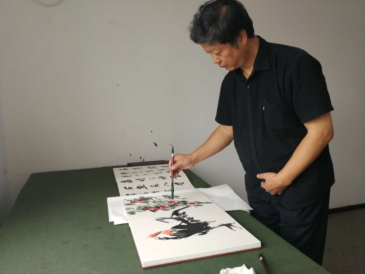 我会30多人出席了开幕式,并盛情邀请河南省文联副主席张剑锋到商会座谈,现场挥毫泼墨,给商会留下了墨宝,并与秘书处共同探讨了今后加强合作互动的问题。